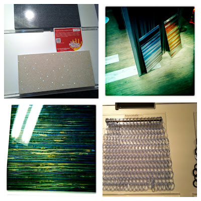 Clockwise from Top Left: I spent a lot of time wandering around and touching everything at the Materials Pavilion curated by Interiors and Sources magazine, these are my top four from their displays 1. Lucem Concrete tiles with Fiberoptics (Like Lucem? See my post about Delight Cloth.) 2. Moz Metal laminates 3. Torzo manufactured from agricultural byproducts and recycled wood and just stunning!
